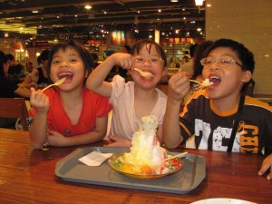 We took a one week holiday in Beijing in June. The weather was dry and the sun blazing. I was so thankful that we brought moisturizer and the suntan lotion. We went to the must-sees – The Great Wall, The Forbidden City, Tian An Men, Wang Fu Jing, the Summer Palace, saw the Olympic icons, the National Theatre, visited the biggest bookstore in Beijing – Xidan Bookstore, the Natural History Museum and the Geological Museum and ate the famous roast duck. Beijing is HUMONGOUS. Most of the time, we took the subway – very cheap (40cents per trip regardless of distance travelled), very efficient but can be rather inconvenient with all the security checks and with most stations having upward moving escalators only. Then we WALKED A LOT!! We had a wonderful time – bonding together as a family and braving each adventure.