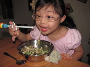 Now that Li-Ann can use the fork and spoon together when she eats on a plate, I decided to teach her how to use the chopsticks. I used to have a pair of training chopsticks I bought for John from Guardian but it’s not working too well so I gave it away and so had hunt for a new one.