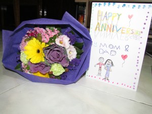 And there were pretty flowers and a beautifully drawn card too…thank you daddy and children!!