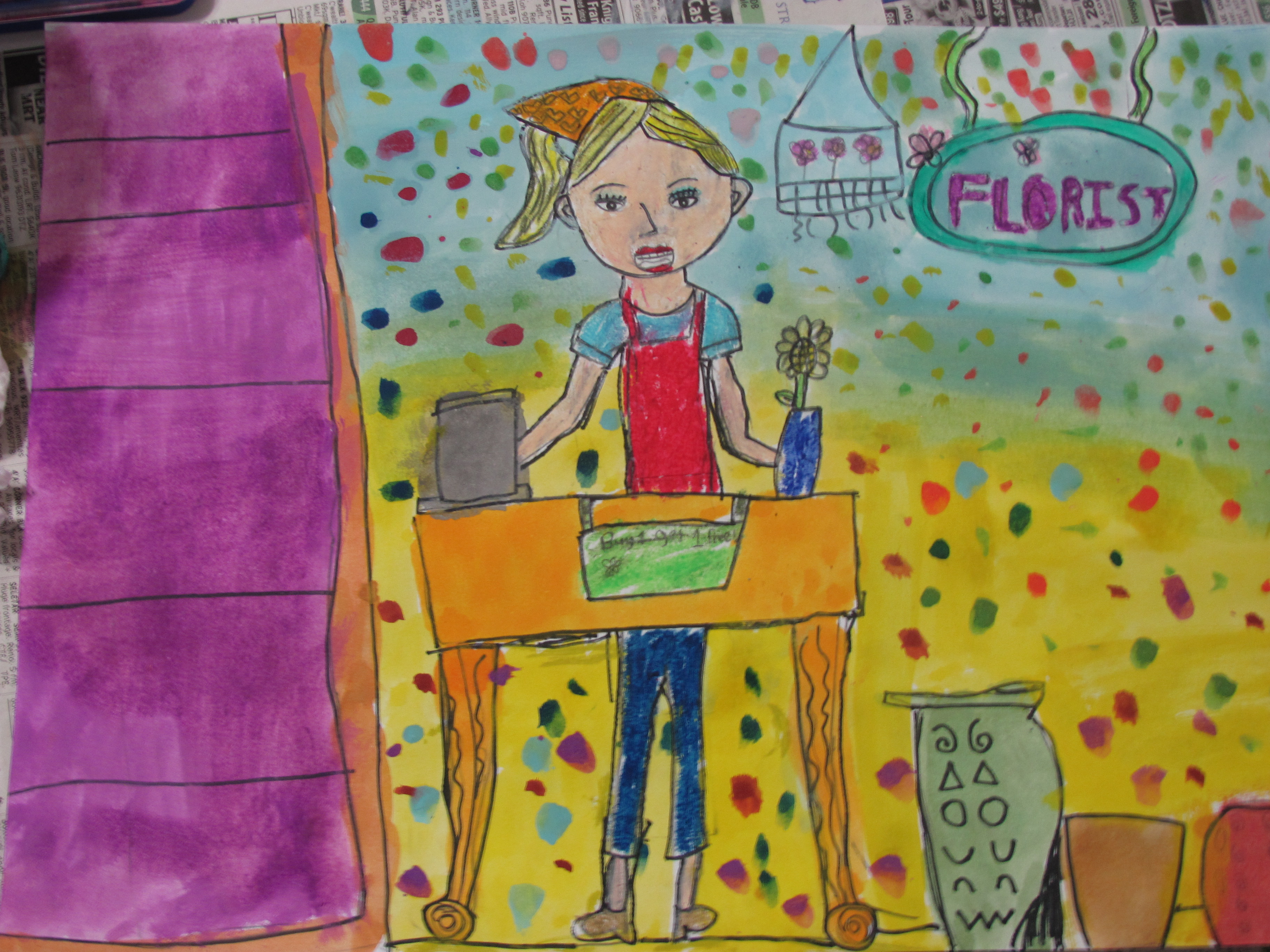 * Recently, I got a young lady to come to my home to teach the children art. The first lesson was to draw a person. She patiently explained how to draw and also the details to look out for. While at this, she also tried to encourage LA to draw by mostly giving verbal instructions along with directing LA on what and where to draw with her fingers. The children then used oil pastels and water colour to complete their paintings. I was amazed at how well the children can draw – even LA. LA did really well until she decided to randomly apply water colour to her WHOLE picture. I pray that with time and practice, LA will improve and enjoy drawing and painting. Daddy was full of praises for the children when he saw what they did. Thank you Jie Jie for your guidance. Here are the children in action and some pieces of their artwork…