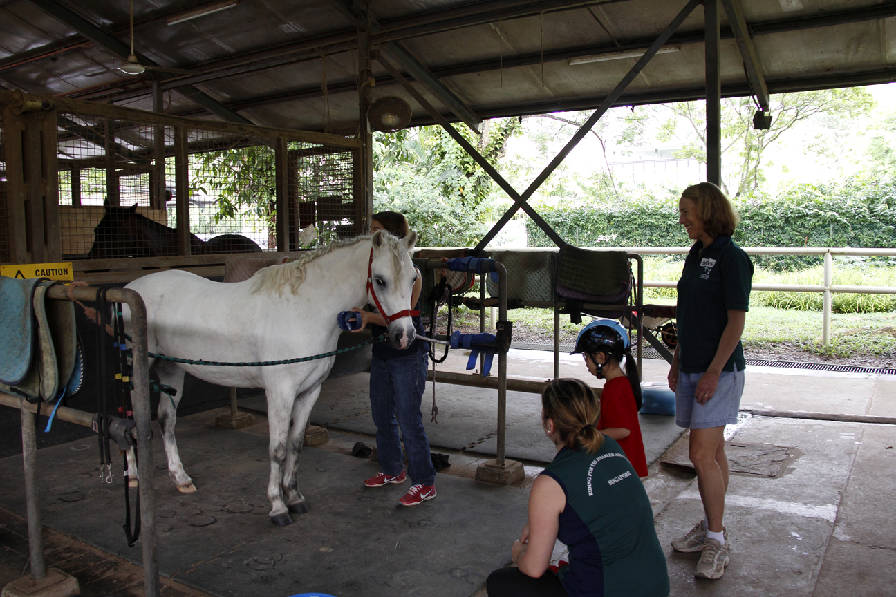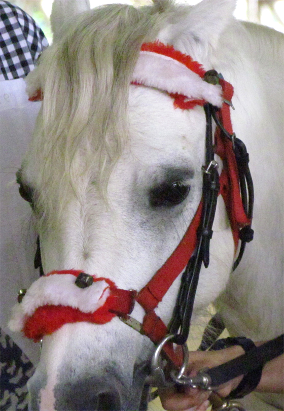 *Li-Ann was given a place for the holiday riding lessons at RDA. Louise and Glow were back to work with LA and Louise really made LA work very hard. She told me how she dreamt of teaching LA to steer the horse independently. When she tried teaching LA, LA faithfully followed instructions and did well. Another time, I saw how Louise guided LA, first verbally, then tapping her on her arm should she forget which was her left or right side. She also told LA how hard to pull the reins depending on when the turn was to be made. I really thank God for Louise’s patience. At least someone who knows all about horses was guiding and teaching LA coz I know nothing about riding and taking care of horses. Just before Christmas, Louise even ‘dressed’ Glow up just for LA. She’s really a SWEET lady.