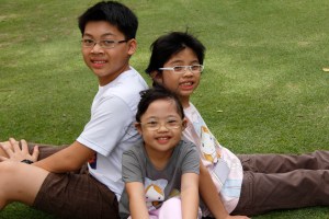 Brother John and sister Rebecca simply adore their little sister. They love to hug, kiss and squeeze her. These two were known to fight over issues like ‘LA likes me better than you!’ or ‘LA wants to play with me.’ or ‘LA is MY dog/cat/horse/etc’ (when they pretended to be one another’s pet).’ While I shake my head over such petty quarrels, I saw their affection for one another and I’m grateful for the love that is holding them together. John thinks LA is The Greatest Blessing while Rebecca tells you All About Li-Ann. Here are pictures of this cherished relationship…
