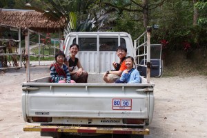 Our LONG and ‘leechy’ walk was rewarded with a quick ride on a truck to the waterfall.