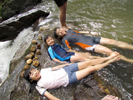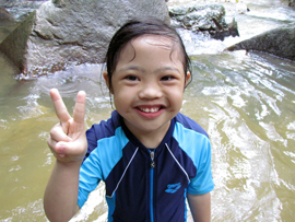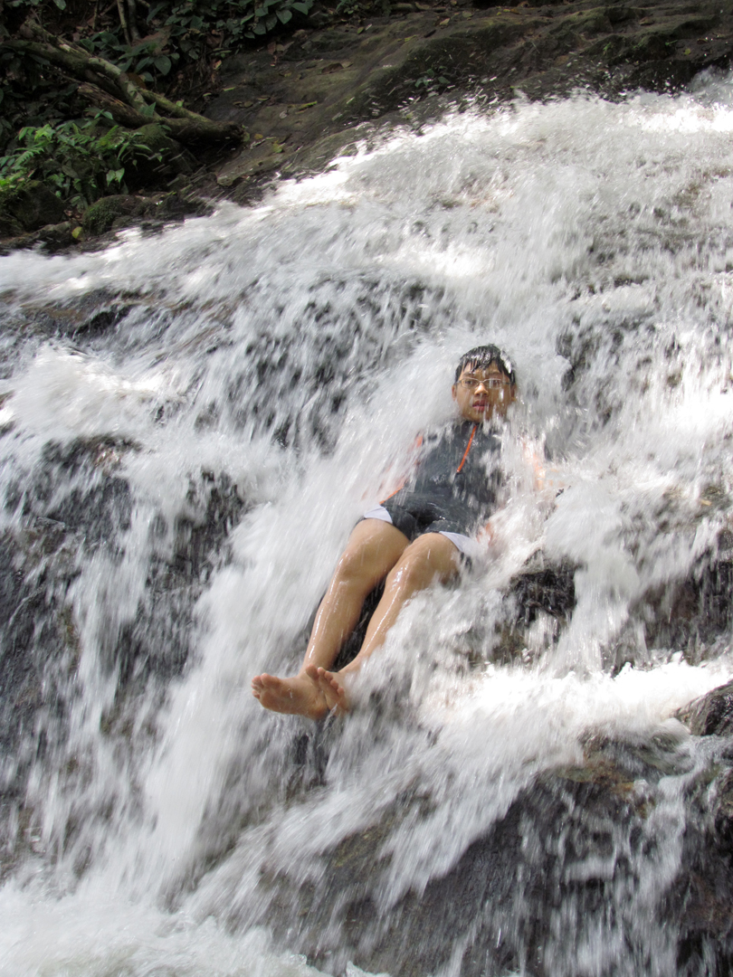 The children were cautious at first but got braver and slowly inched themselves to the foot of the fall after a while. They played in the water, on the rocks and had fun on the natural water slide too.