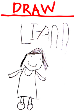 One day, Rebecca persuaded Li-Ann to draw herself (hence, Rebecca wrote the word ‘DRAW’) by following some instructions she (Rebecca) would give to her.