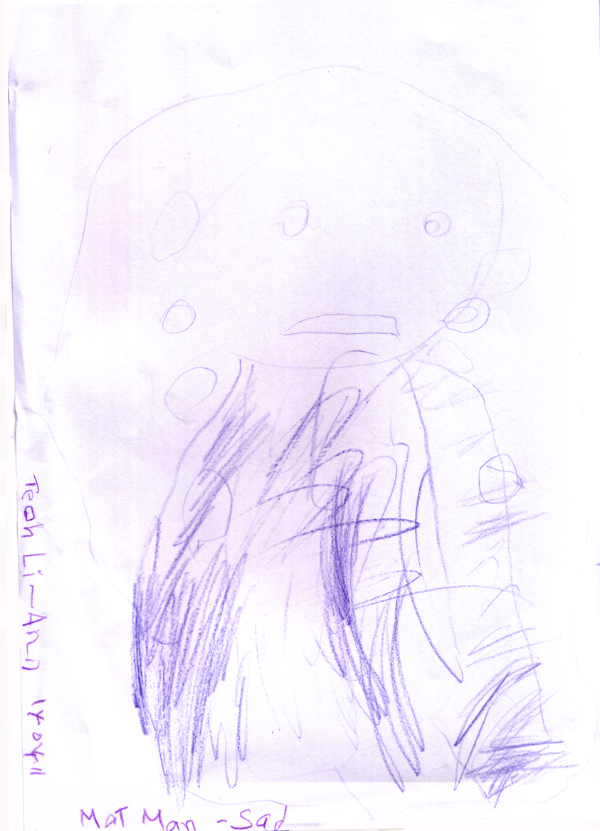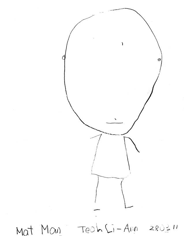 Mat Man I am trying to use ‘Handwriting Without Tears’ with Li-Ann. Below are her pictures of the Mat Man after 2 different lessons with her after she pieced the Mat Man from the curved and straight pieces and other materials. Mat Man Mat Man -Sad Share this: Click to share on WhatsApp (Opens in new window) WhatsApp Click to email a link to a friend (Opens in new window) Email Like Loading...
